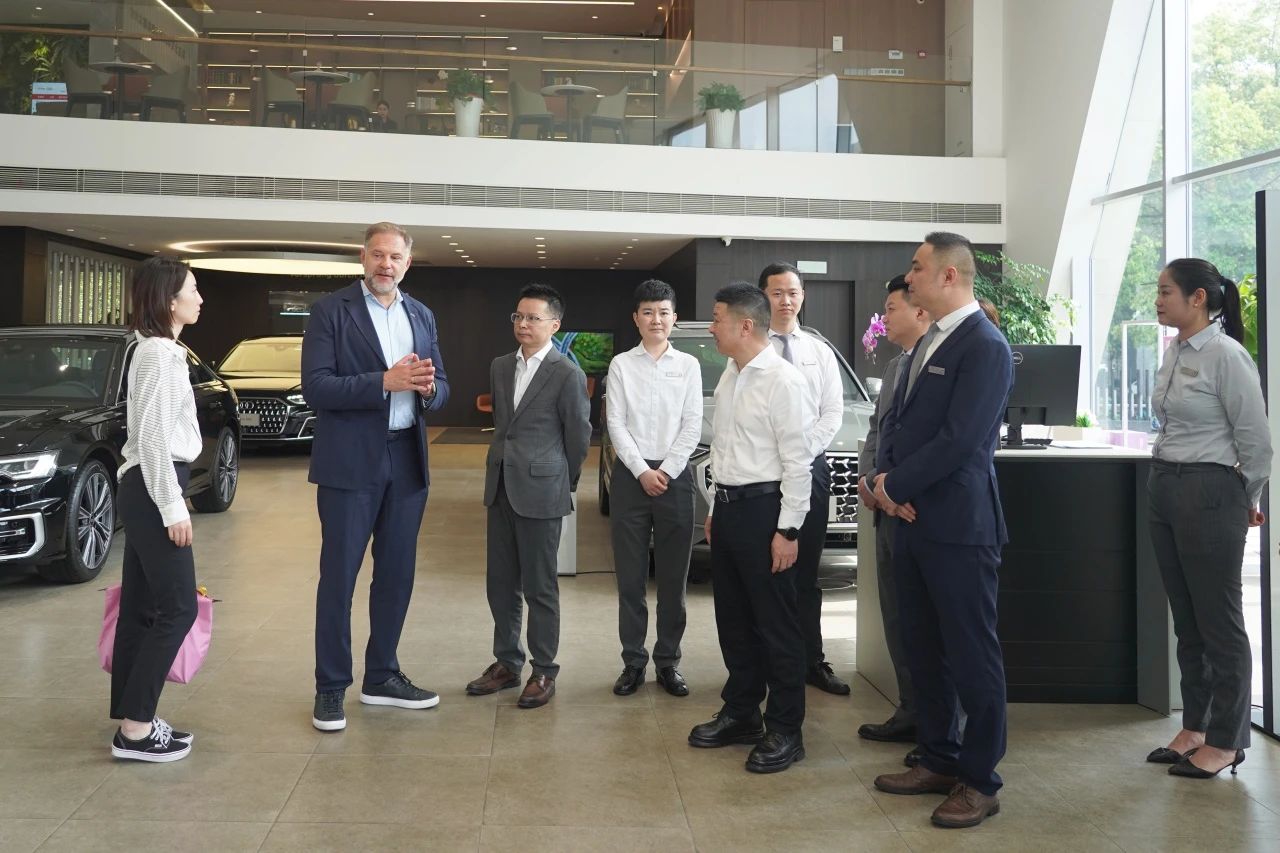 2025年4月11日,一汽奧迪銷售有限責(zé)任公司總經(jīng)理安德楷(Michael Arndt)一行赴華宏汽車集團(tuán)走訪調(diào)研。華宏汽車集團(tuán)董事長戴華,董事副總裁、品牌總經(jīng)理張浩平,總裁助理、青云譜奧迪4S店總經(jīng)理葉亞亮,總裁助理、人力資源總監(jiān)朱暉,投資人代表戴鑫等共同接待安德楷一行的來訪。雙方圍繞品牌發(fā)展、市場開拓及廠商合作等進(jìn)行了深入交流。