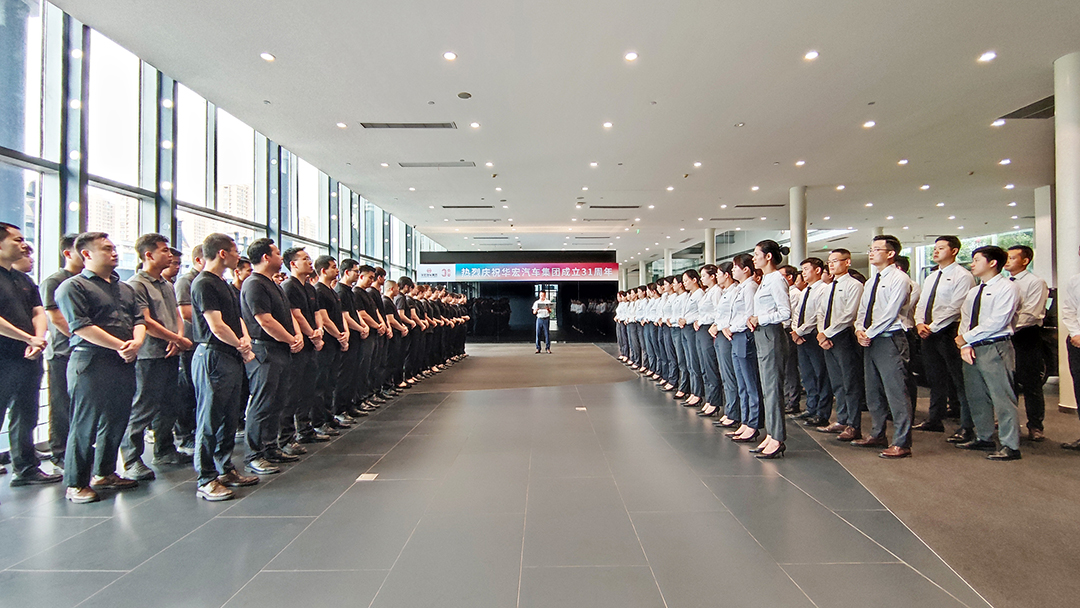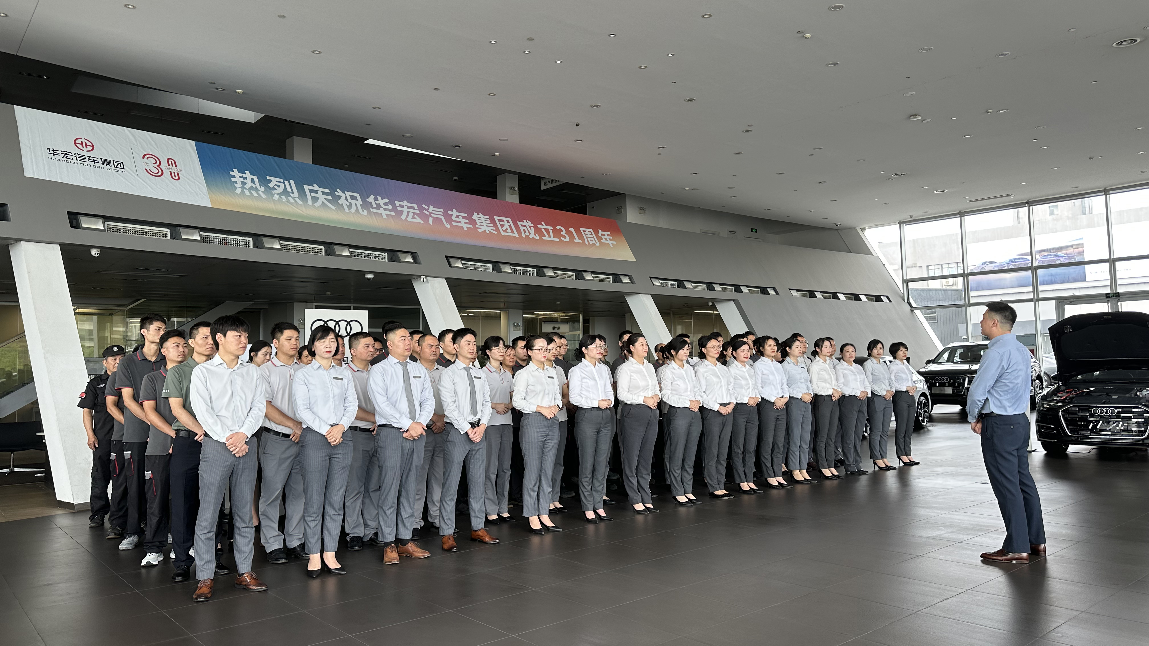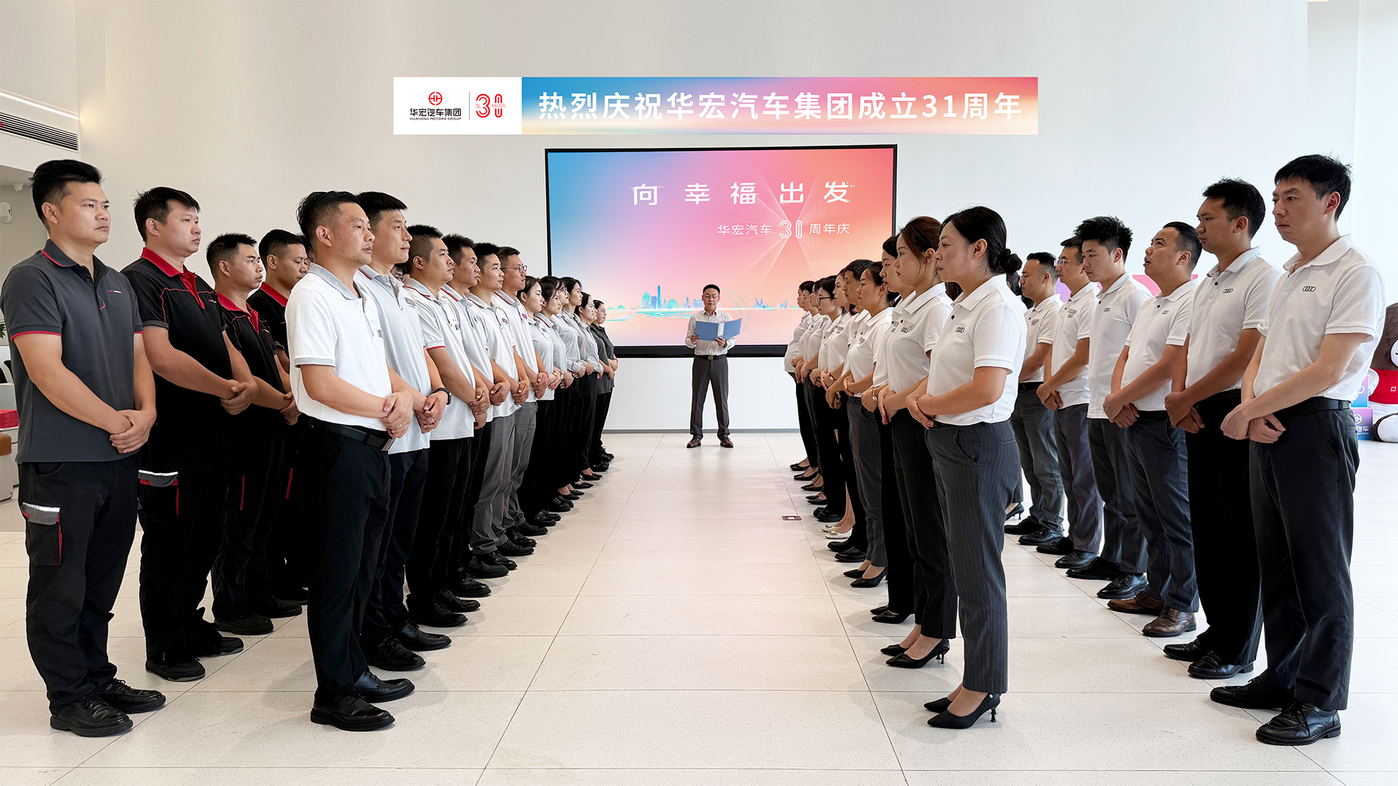 8月15日,“向幸福出發(fā)”——華宏汽車集團31周年慶特別晨會在集團總部及各子公司隆重舉行。集團董事長戴華,集團各副總裁、總裁助理、品牌總經(jīng)理分別出席各子公司晨會。